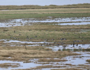 2. januar 2019, Nyord enge total oversvømmet grundet stormflod som følge af storm over flere dage i Østersøen. Der bliver noget for vandfuglene når vandet trækker sig tilbage.