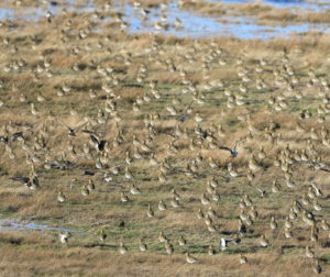 De fugle der dominerer i efteråret og først på vinteren er bramgæs, grågæs, knortegæs, hjejler og pibeænder som kan optræde i 1000 vis, hvis engene har været oversvømmet. Havørnene holder til her hele året og sidder typisk på pynterne på øer og holme. Er du heldig ser du havørnen jage gæs og ænder, men det meste af tiden sidder de blot stille. Vandrefalken er også en hyppig gæst på engene.