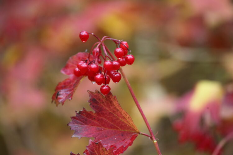 I efteråret står der i mange levende hegn en flammende smuk rød busk med højrøde glinsende bær, det er kvalkved, nok den busk med det mest intense farveskift fra grøn til flammende rød. Når løvet er smidt hænger de højrøde bærklaser tilbage.